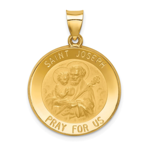 [US] Diamond2Deal 14k yellow gold polished and satin st joseph medal hollow pendant