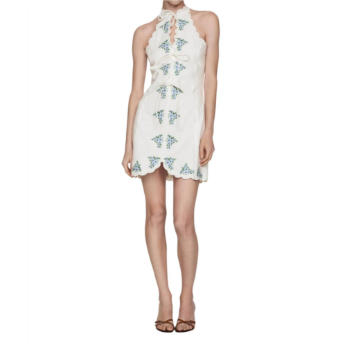 [US] Fate embroidered scalloped linen dress in white/ blue flowers