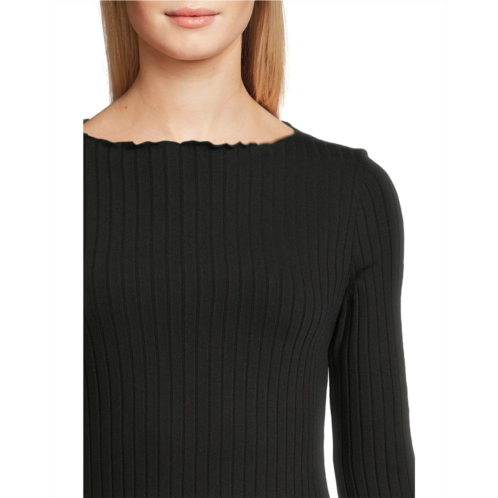 [US] Vince Rib Long Sleeve Slash Neck