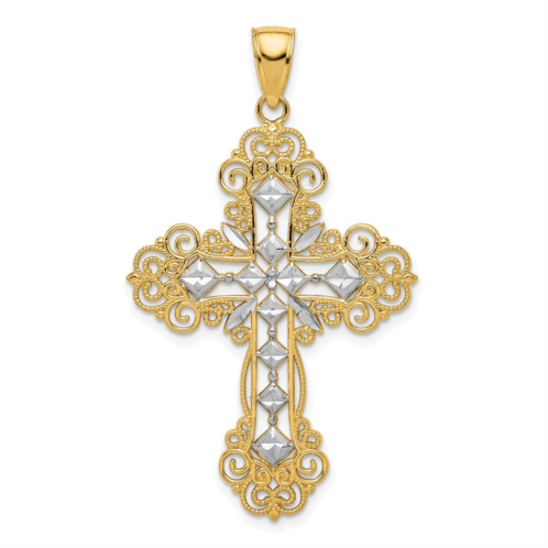 [US] Diamond2Deal 10k yellow gold rhodium polished & textured diamond pattern cross pendant