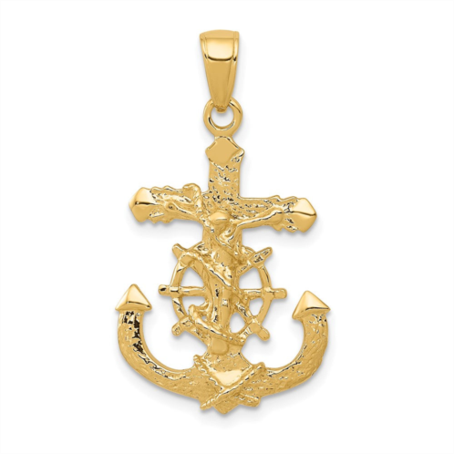 [US] Diamond2Deal 10k yellow gold polished & textured 2-d mariners crucifix rope/wheel pendant