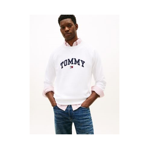 - Crewneck, ribbed trim, raglan sleeves, Tommy varsity logo.