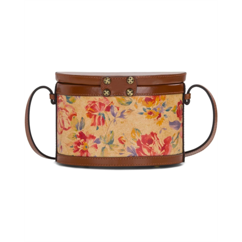 - The whimsical round Patricia Nash Nomiki Crossbody Bag brings just the right touch of style to any outfit. Crafted in luxurious leather and featuring the Aegean Blooms print, it's the perfect blend of artistry and function. With an adjustable strap for versatile wear, you can carry it comfortably all day, whether you're strolling through the city or heading out for a night of fun. Crafted in a full-grain leather material and polyester & faux suede lining, the crossbody bag features an internal compartment, two slip pockets for storage, and a built-in mirror. Its compact shape holds just the essentials, while the unique floral pattern adds an exquisite touch.