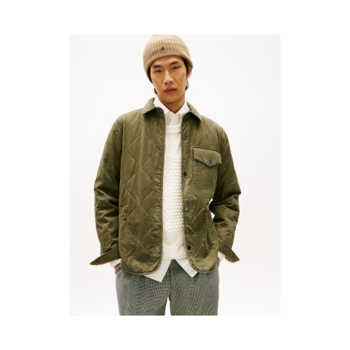 Tommy Hilfiger men's jacket. This lightweight quilted shirt jacket is crafted from peached, garment-dyed cotton for exceptional softness and rich, one-of-a-kind color.