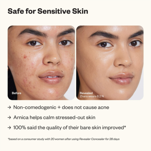 What it is: A super creamy, skincare-packed clean concealer with medium coverage and a fresh, hydrated, radiant finish. Non-comedogenic. Safe for sensitive skin.