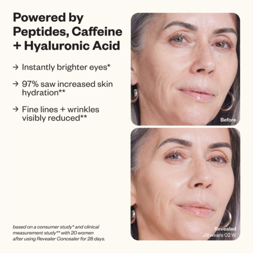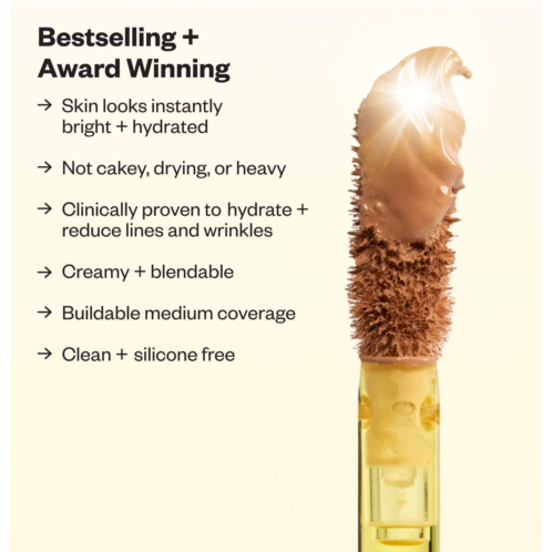 What Else You Need to Know: This silicone-free formula blends easily and seamlessly melts into skin. It helps reduce the appearance of dark circles, hyperpigmentation, redness and blemishes but still fully looks like your skin. Buildable coverage is delivered in an eye cream base packed with hyaluronic acid, peptides, and caffeine that visibly brightens, hydrates and plumps. Clinically proven to improve the quality of bare skin over time and reduce the appearance of fine lines and wrinkles. Safety tested to not clog pores or cause breakouts.