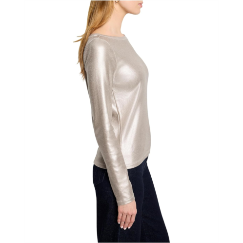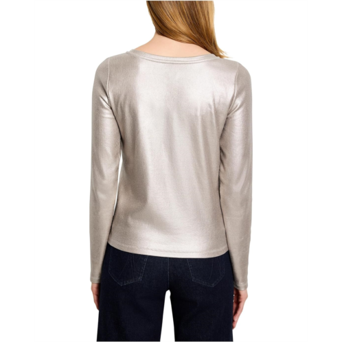 Slip into sleek sophistication with thd fitted NIC+ZOE Glazed Rib Boat Neck Tee, crafted from a soft yet structured midweight rib that hugs your shape in all the right places. Designed with long sleeves, a boat neckline, and a straight hem with hip-grazing length, it's an elevated essential with everyday ease. Subtle glazing woven into the fabric catches the light for a hint of shine-perfect for adding polish to your denim or dressing up a tailored look. This pull-on style tee is a modern staple that blends comfort, confidence, and just the right amount of shimmer.