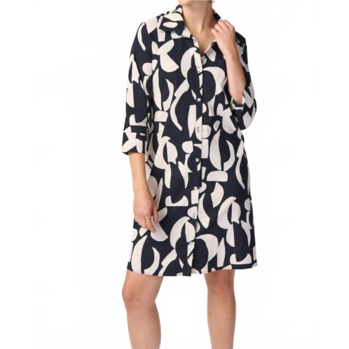 [US] Joseph Ribkoff abstract print stretch poplin trapeze dress in black/moonstone