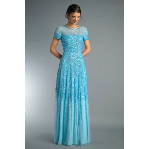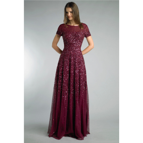 [US] Basix Black Label short sleeve sequined evening gown