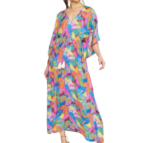A maxi dress that is just as cute as it is comfortable.Introducing the Tropical Print Maxi Dress by Entro, a perfect vacation piece in a vibrant Blue Multi pattern. This A-line dress features a v-neck and three-quarter sleeves, with a tassel tie drawstring at the waist for a flattering fit. Crafted from soft rayon fabric, it offers a breezy and comfortable feel. Closure - Pull on. Care instructions - Hand wash and line dry.