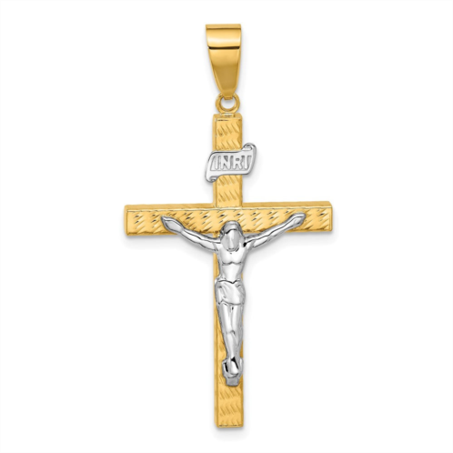 [US] Diamond2Deal 14k two-tone gold polished and diamond-cut crucifix pendant