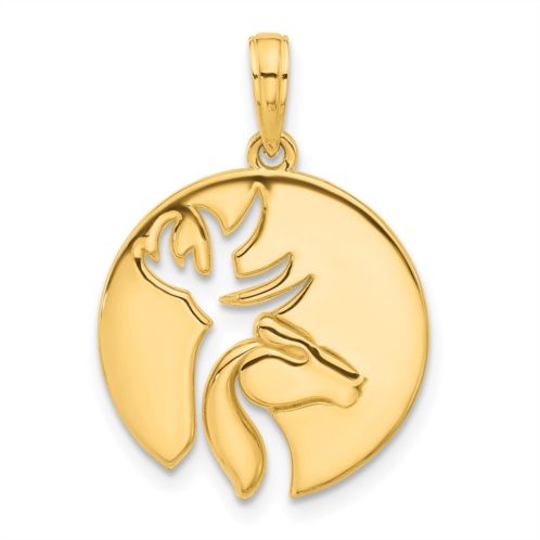 [US] Diamond2Deal 14k yellow gold polished cut-out deer head circle pendant