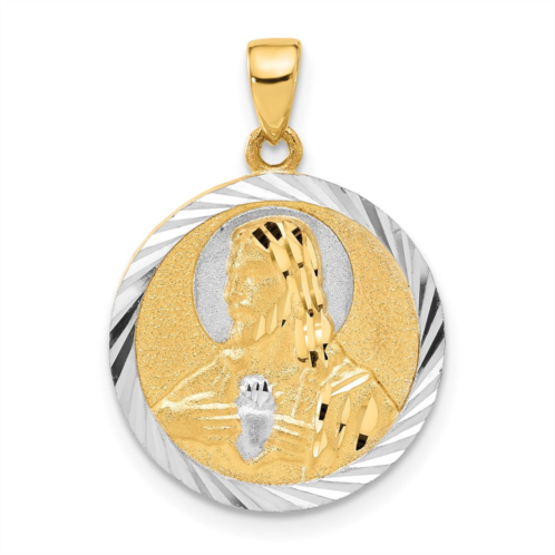 [US] Diamond2Deal 14k yellow gold with white rhodium satin and diamond-cut reversible mary / jesus pendant