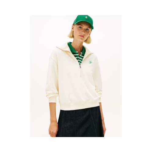Tommy Hilfiger women's sweatshirt. Made from cotton-blend terry with a soft, cozy feel, our sweatshirt features a quarter-zip placket and script monogram embroidery at the chest. Throw it on for anything from errands to weekend brunch