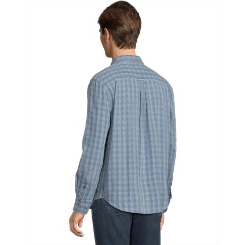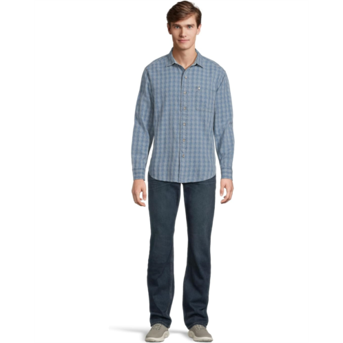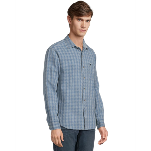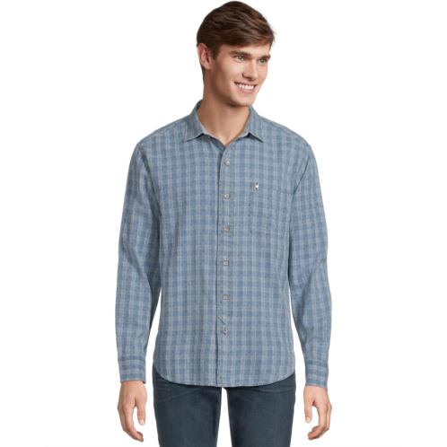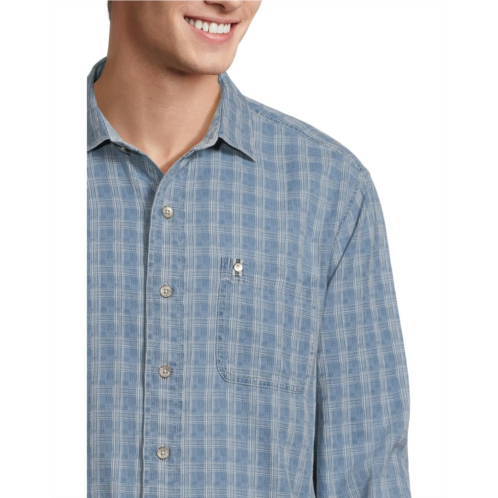 - Yarn dyed indigo acid washed long sleeve button front shirt with camp collar, rounded pocket and shirttail hem. Contrast trim details inside cuffs. INDIGO PALMS COLLECTION: A collection of the softest denim fabrics, expertly crafted with special details that nod to the Tommy Bahama heritage and stand the test of time.