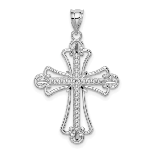 [US] Diamond2Deal 14k white polished diamond-cut textured cross pendant