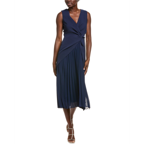 Elevate your wardrobe with the Kay Unger Petra Tea-Length Dress. This stunning dress in midnight features a layered design, twisted waist detail, and pleated inner skirt for a sophisticated look. The dress is approximately 49 inches from shoulder to hem and has a center back zipper with hook-and-eye closure for easy wear. Made from 88% polyester and 12% spandex with combo and lining in 100% polyester, this dress is dry clean only. Imported and designed by Kay Unger, this dress is an understated closet staple that will make you stand out at any event.