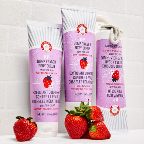 What Else You Need to Know: Visibly slough away KP bumps and strawberry skin with this body scrub, now in a natural strawberryscent to refresh your shower routine. The fast-acting formula combines chemical and physical exfoliants to visibly improve skin’stexture and smooth bumps after just one use.