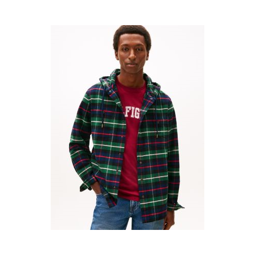 Tommy Hilfiger men's shirt. A special brushed finishing treatment gives this flannel shirt an extra soft feel. Cut in an easy fit and designed with a hood, this mid-weight layer will be on regular rotation in your casual wardrobe.