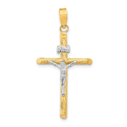 [US] Diamond2Deal 14k yellow gold white rhod polished textured inri crucifix cross pendant