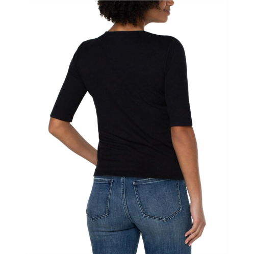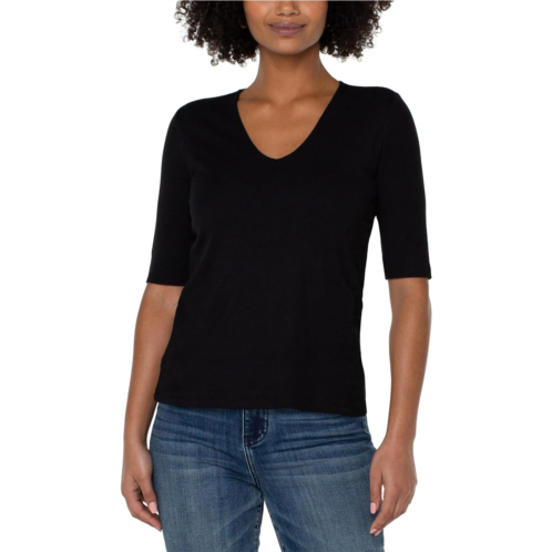 [US] Womens Liverpool Los Angeles Double Layer V-Neck 1/2 Sleeve Rib Knit Top