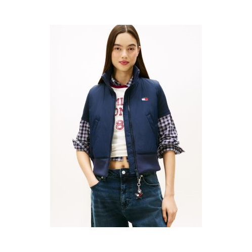 Tommy Hilfiger women's vest. This vest is designed in a flattering cropped fit with warm insulation to keep you toasty. Featuring our bold flag logo at the back, this outer layer makes it easy to showcase your Tommy spirit. Part of our Tommy Jeans collection.