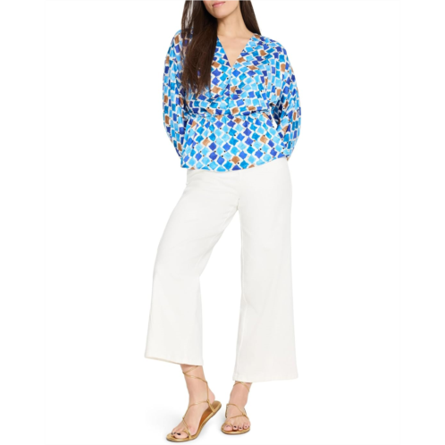 Square up your look with your new favorite NIC+ZOE Mosaic Sofia Top. Featuring a print inspired by classical Mediterranean mosaics, and woven from our ultra-drapey fan fave Pottery Crepe, she's top of your list for fun in the sun. Designed to fit easily, with stretch at the waist that creates a fun, feminine shape and creates a little extra swish with your every turn. Shaped dolman sleeves and a generous V-neck complete the Sofia silhouette.