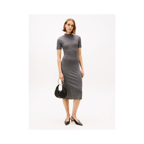 Tommy Hilfiger women's dress. Soft, comfortable and party-ready, our rib-knit midi dress is made from a lightweight viscose blend with allover metallic shimmer. The versatile mockneck and short-sleeve silhouette takes you through the transitional season with ease.