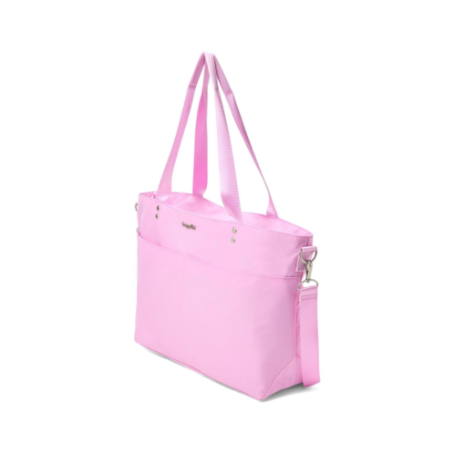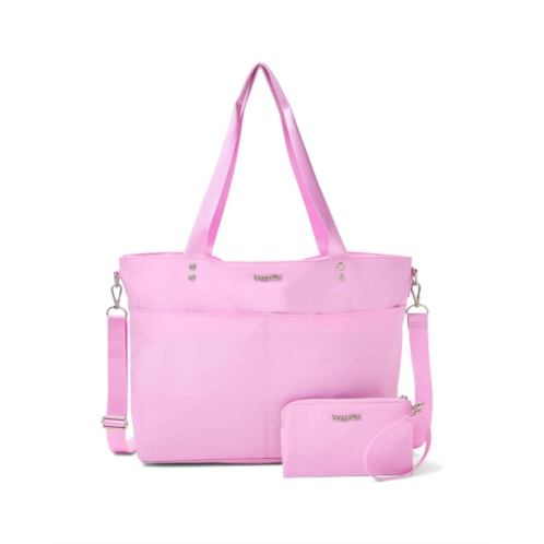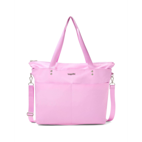 - With the ability to be worn as a shoulder bag or crossbody, this spacious Baggallini Carryall Laptop Tote is a must-have for your work week, upcoming travels, or trips. Store your computer in the secure 15' padded laptop sleeve. For smaller items that require fast access, exterior slip pockets and an anti-theft card wristlet have you covered. Constructed from durable nylon material, this versatile bag features a removable and adjustable crossbody strap, dual grab handles, and a zippered top closure.
