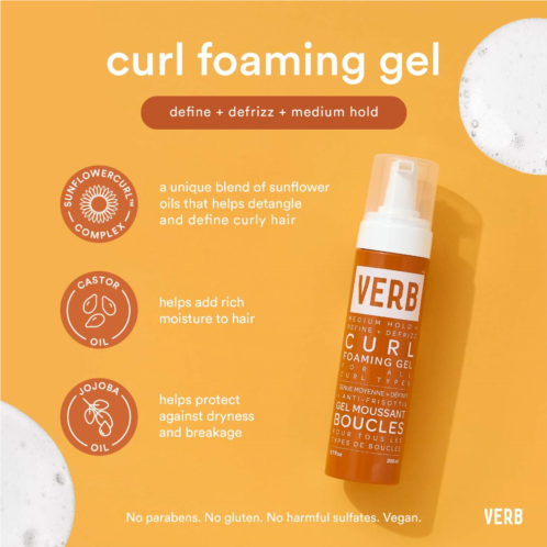 What Else You Need to Know: Verb Curl Foaming Gel adds frizz control, lightweight hold and definition with a crunch-free finish. Powered by our proprietary SunflowerCurl Complex, cold-pressed golden jojoba oil and castor oil, this foaming gel deeply nourishes and locks in moisture.