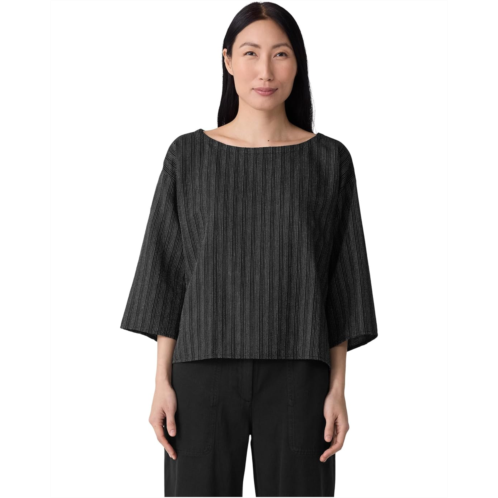 [US] Eileen Fisher Cotton Blend Stripe Stitch Bateau Neck Box Top