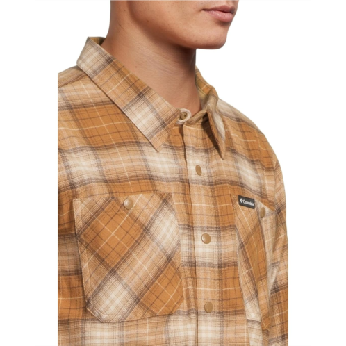- Celebrate that cozy comfort throughout the day while flaunting a timeless and elegant look donning the Columbia Cornell Woods Fleece Lined Shirt Jacket. Constructed in a classic flannel fabric, this layering piece is structured with a spread collar, long sleeves with adjustable cuffs, buttoned front closure, and dual chest pockets.