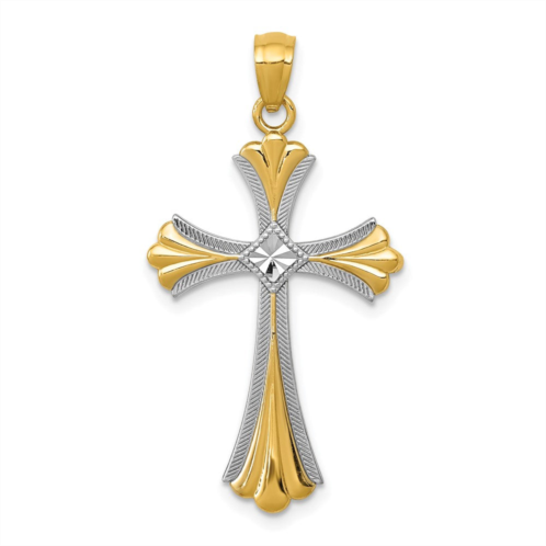 [US] Diamond2Deal 14k yellow gold diamond-cut rhodium budded cross pendant