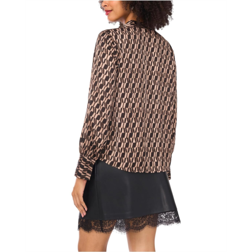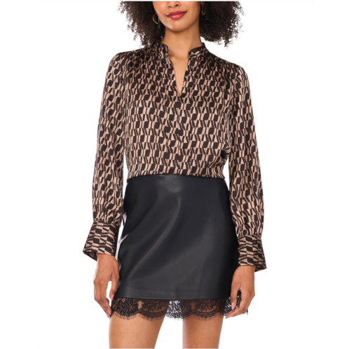Feminine and fabulous, the Vince Camuto V-Neck Wide Cuff Blouse is a standout piece in your collection. The pull-on style blouse features a V-neckline, long sleeves with buttoned cuffs, an allover geometric print, and a straight hem.