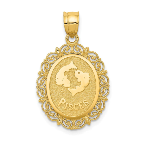 [US] Diamond2Deal 14k yellow gold solid satin polished pisces zodiac oval pendant