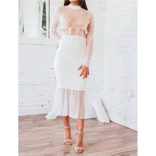 [US] Ariti Kaziris long sleeve sheer lace dress in white/rose gold