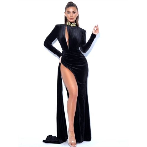 [US] Miss Circle women zenaida black cutout high slit velvet gown