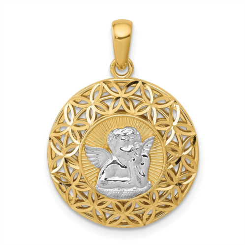 [US] Diamond2Deal 14k yellow gold rhodium polished filigree guardian angel pendant
