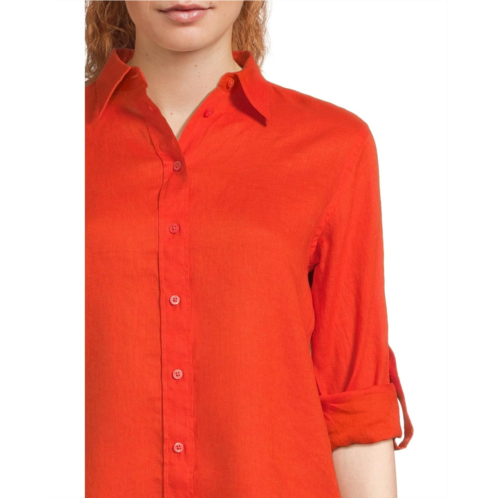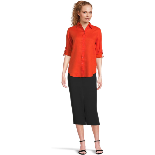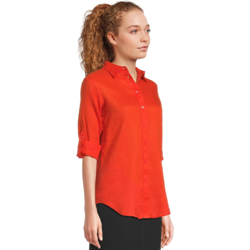 Light-as-air linen makes this Lauren Ralph Lauren Relaxed Fit Linen Shirt, designed with long roll-tab sleeves, a must-have for the season. It features a pointed collar, long roll-tab sleeves with buttoned barrel cuffs, buttoned front closure, and a shirttail hem.