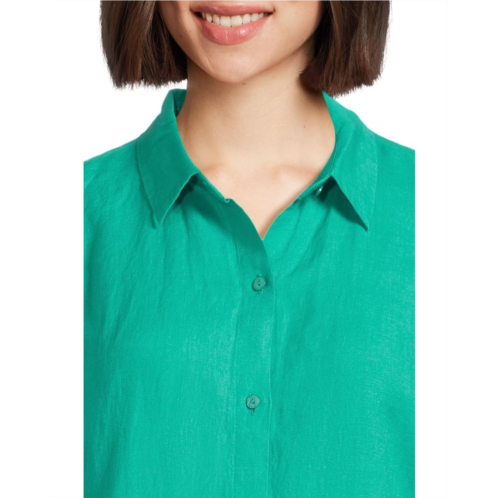 Create a polished look with this light and airy EILEEN FISHER Classic Collar Long Shirt. Featuring a fold-over collar, long sleeves with button closure cuffs, front button closure, and a shirttail hemline.