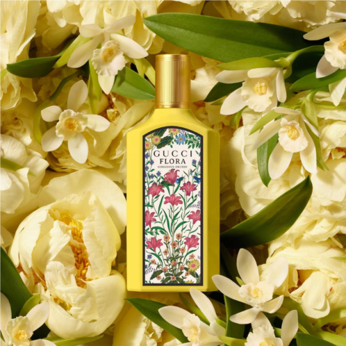 About the Bottle: Gucci Flora Gorgeous Orchid is housed inside a yellow glass bottle and crowned with a luminous gold cap. Reimagined with the iconic Gucci Flora print both on the bottle and outer packing, the design is bursting with illustrated floral life.