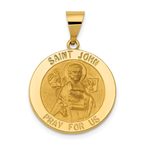 [US] Diamond2Deal 14k yellow gold polished and satin st john medal hollow pendant
