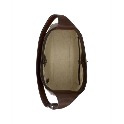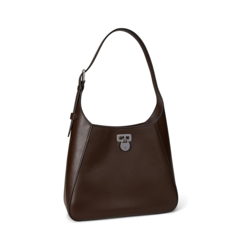 - Offering ample storage for your essentials, the curved silhouette of the Lauren Ralph Lauren Leather Large Tanner Shoulder Bag is rendered in supple full-grain leather, which is distinguished by its naturally smooth finish. Embellished with signature details, including an LRL engraved padlock charm and a Lauren engraved roller buckle, this piece features an adjustable buckled shoulder strap for versatility. The dog-clip closure of the purse offers easy access while the 'Lauren Ralph Lauren'-debossed logo at the back and 'Lauren Ralph Lauren est. 1967'-engraved brass-finished plaque at the interior adds to its style.