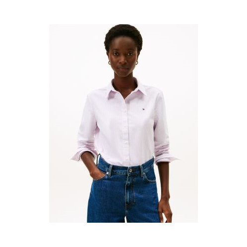 Tommy Hilfiger women's shirt. Shirting made with Oxford cloth is soft, breathable and durable. Our version is made from organic cotton with a hint of stretch. Comfortable and lightweight, this button-up is the cornerstone of versatile and effortless ensembles.