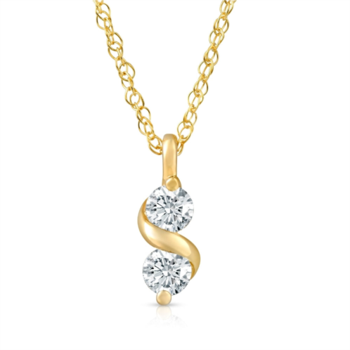 This stunning womens pendant features two sparking round brilliant cut lab grown diamonds. The diamonds are set in solid 14k gold polished mounting. An 18' spring ring chain is included.