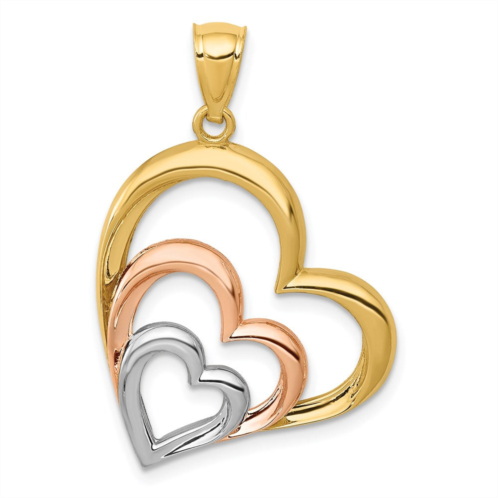 [US] Diamond2Deal 14k two-tone gold and white rhodium polished 3 hearts pendant
