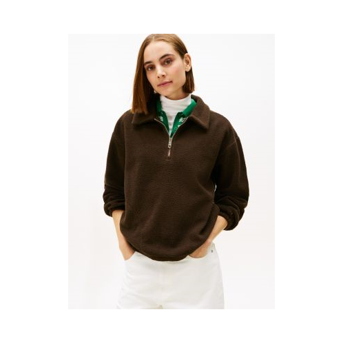 Tommy Hilfiger women's sweatshirt. Our quarter-zip sweatshirt is made from plush teddy fleece that delivers on extra comfort and warmth. It's the perfect seasonal layer as you venture through your day.