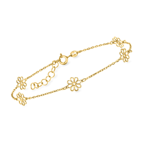 With a commitment to quality and affordability, Ross-Simons presents timeless jewelry for the modern woman.RS Pure. Modern designs that complete your outfit and complement your personality.Give your outfits a feminine touch with this dainty 14kt yellow gold flower station bracelet! Pretty blooms adorn a simple cable chain with a 1' extender that makes stacking a breeze. Made in Italy. Springring clasp, 14kt yellow gold flower station bracelet. Each Ross-Simons item arrives in a fine jewelry presentation box. Shop Ross-Simons jewelry risk-free as all items include a 30-day, 100% money-back guarantee.
