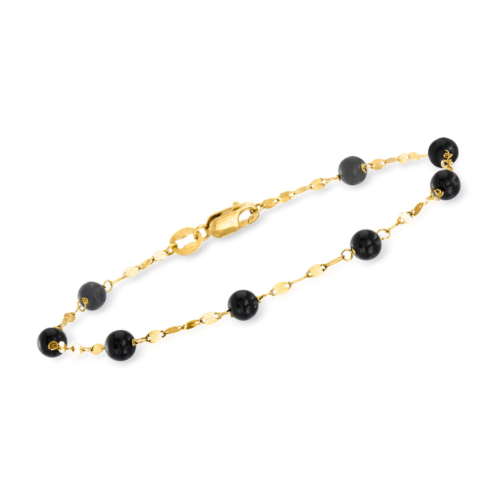 Ross-Simons travels the world to find beautiful, high-quality styles at the best prices. Sometimes a splash of color is the defining element that makes the whole stack stand out. This easy-to-pair bracelet from Italy will serve many memorable looks, featuring shiny 4-4.5mm round onyx beads stationed along an 18kt yellow gold lumachina chain. Lobster clasp, onyx bead station bracelet. Each Ross-Simons item arrives in a fine jewelry presentation box. Shop Ross-Simons jewelry risk-free as all items include a 30-day, 100% money-back guarantee.