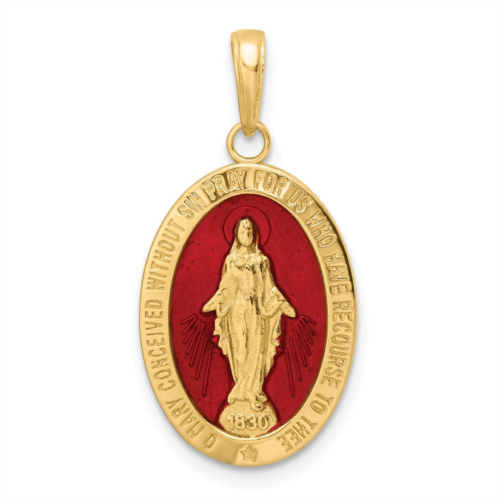 [US] Diamond2Deal 14k gold red enameled miraculous medal pendant